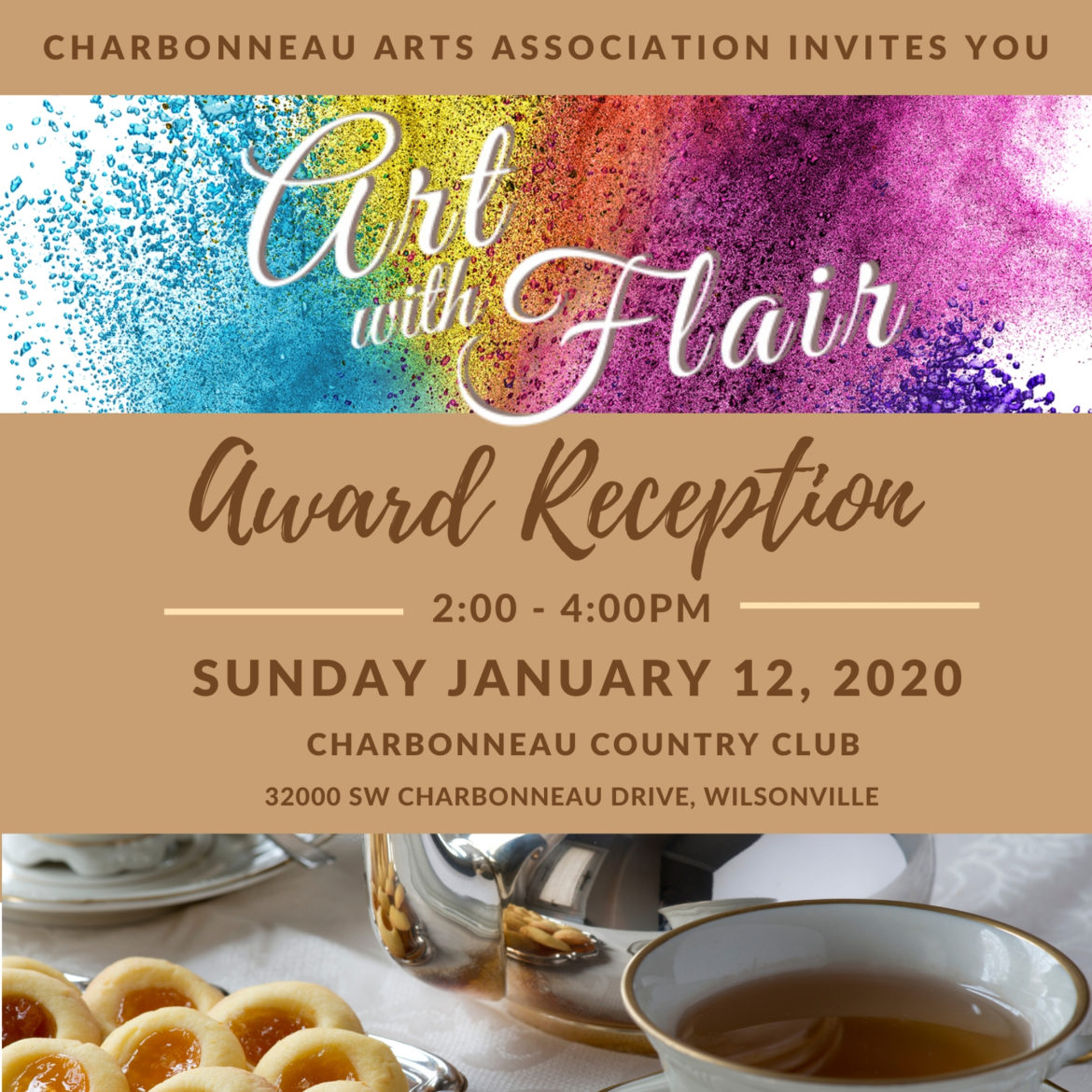 The Charbonneau Arts Association will donate $4000 each to the art program at Canby and Wilsonville High Schools in an Award Reception at Charbonneau Country Club, Sunday, January 12, 2020, 2 to 4 p.m. Sponsors, volunteers, participating artists and artisans, students, teachers, principals, and their spouses are invited to attend.