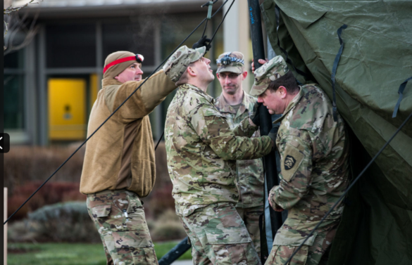 Salem setting up emergency hospital facilities at Salem Fairgrounds.